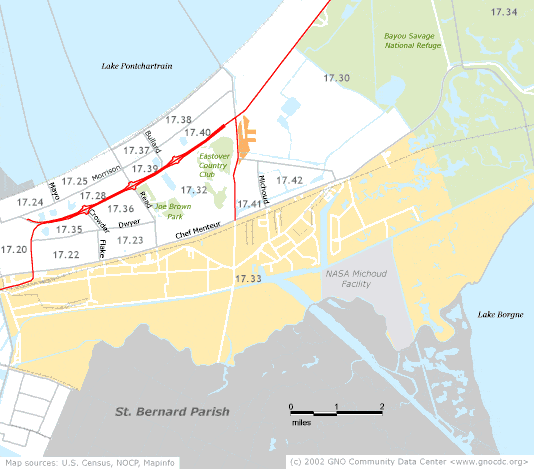 Maps of the Viavant/ Venetian Isles NeighborhoodNeighborhoods in the Data Center web site are made up of Census tracts. This allows the easy combination of Census data to give accurate information at the neighborhood level. Below you'll find three maps. The first of these shows Census tract boundaries, the second is a street map with the neighborhood boundaries, and the third, just for comparison, shows the zip code boundaries that fall in this neighborhood. Census tract boundaries![]() Street map boundaries![]() Zip code boundaries![]()