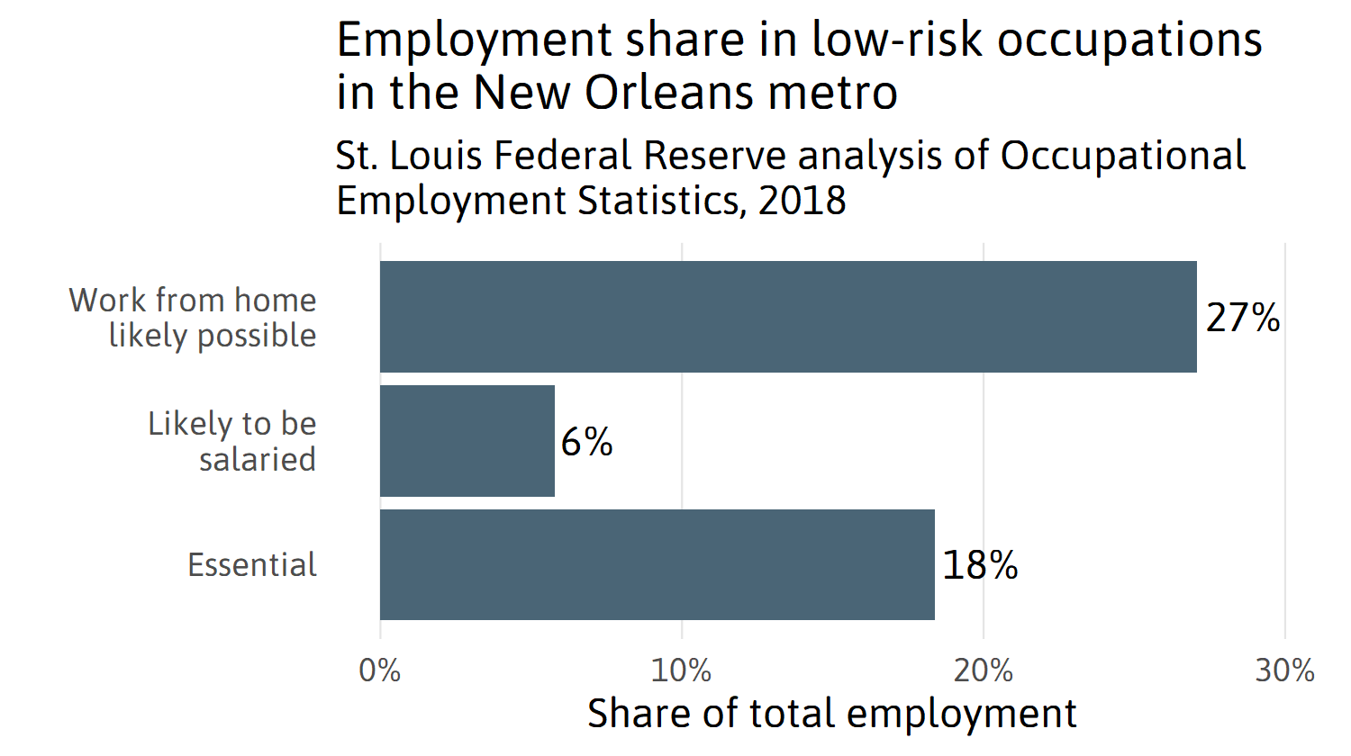 18 Gascon, Charles. (2020). “COVID-19: Which Workers Face the Highest Unemployment Risk?” On the Economy Blog. The St. Louis Federal Reserve.; Gascon, Charles. (2020). “COVID-19 and Unemployment Risk: State and MSA Differences” On the Economy Blog. The St. Louis Federal Reserve.