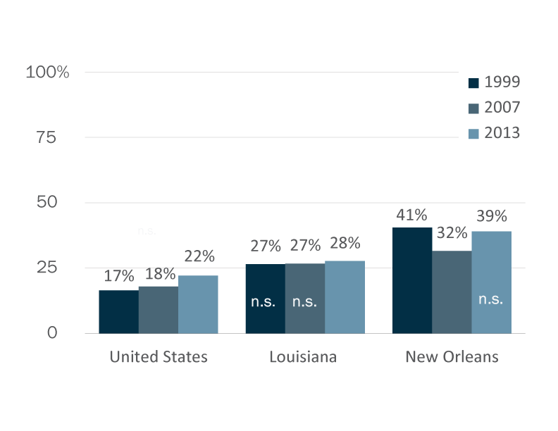 *Differences between New Orleans and U.S., and between Louisiana and U.S. are statistically significant (95% C.L.).
