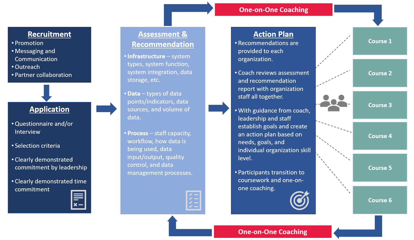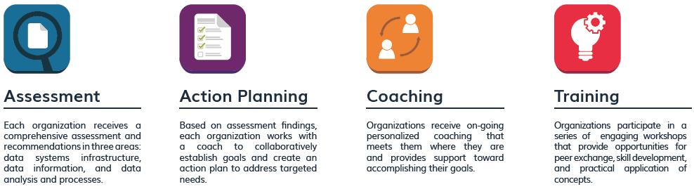 Success in the fellowship depends on shifting organizations toward a culture of data-based decisionmaking. Participating organizations must commit an executive leader, a board member, and a key data staff person to a 9-month cohort consisting of assessment, action planning, hands-on coaching, and trainings.