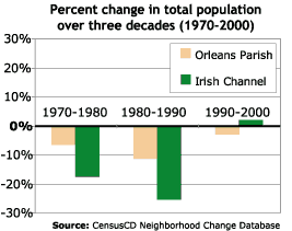 the Irish Channel population took place between 1970 and 1990 (down 38%).