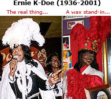 | Ernie K-Doe's stand-in, a wax sculpture, has made the rounds across town at the Kingsley House Fall Festival, Save Our Cemeteries' Mourning Glory Ball, and DramaRama at the Contemporary Arts Center. | ||