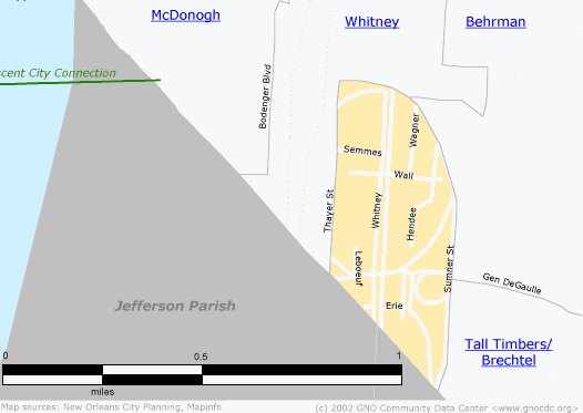 Fischer Development NeighborhoodIn recent years, many housing developments in New Orleans have undergone massive renovations and redevelopment. The numbers from the 2000 Census for this neighborhood are no longer accurate. Please check with the Housing Authority of New Orleans and the Fischer Resident Council for the most current status. [Read more in the Neighborhood Snapshot] Street map with links