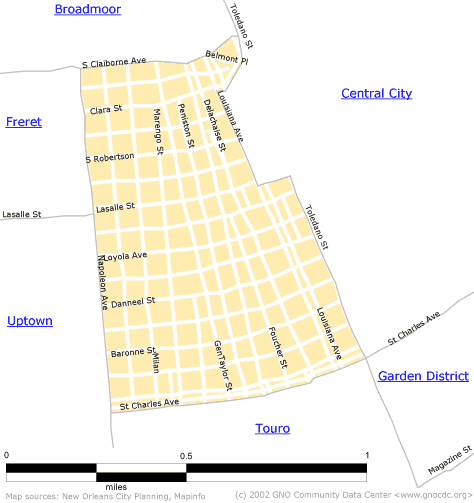 Milan NeighborhoodMilan is a neighborhood of low- to middle-class families, a high majority of who are renters (Claritas estimates 1999, Census 2000). It is considered to be one of the Garden District neighborhoods and is bounded by the avenues Napoleon, St. Charles, Louisiana and South Claiborne. [Read more in the Neighborhood Snapshot] Street map with links