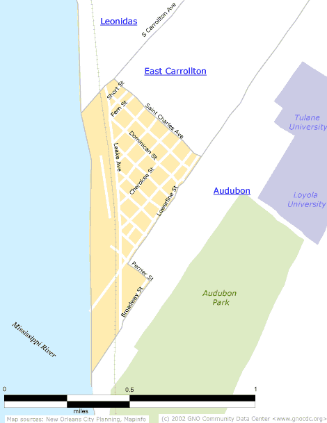 Black Pearl NeighborhoodBlack Pearl, so named in 1974 by city planners, is a sort of microcosm of New Orleans. Driving through it, one notices that Black Pearl has some surprisingly varied and interesting architecture for such a small triangle of land. [Read more in the Neighborhood Snapshot] Street map with links