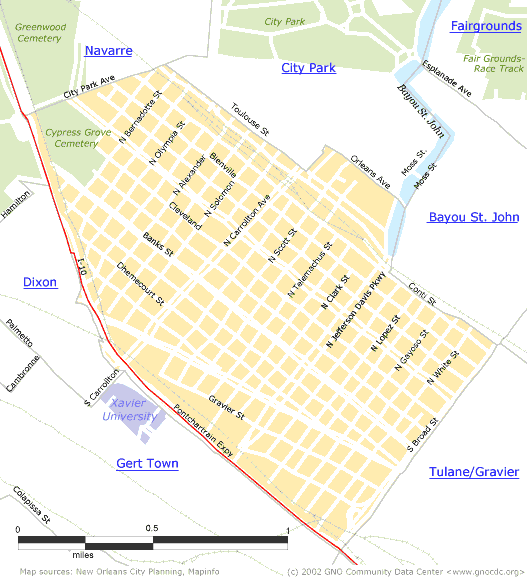 Mid-City NeighborhoodMid-City, so-called because its location at one time was in the middle of the city, has a character and spirit that most of its residents enjoy. Mid-City has a comfortable balance of various land uses, with a mixture of restaurants, shops, schools, churches, walking tours and its most noted cemeteries. The neighborhood is near City Park, the largest green space in the city. [Read more in the Neighborhood Snapshot] Street map with links