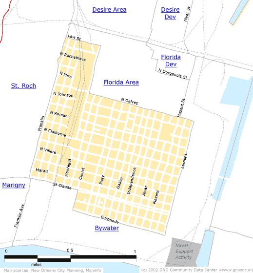 St. Claude NeighborhoodThe famous streetcar named Desire ran through the St. Claude community. It is slated to be resurrected and will run down St. Claude Avenue to the industrial canal bringing much needed transportation to the community. [Read more in the Neighborhood Snapshot] Street map with links