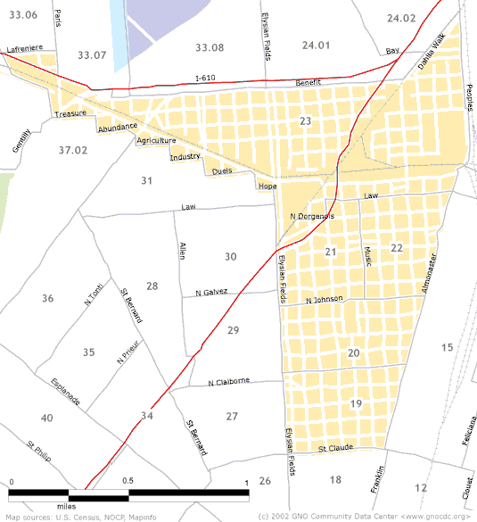 Maps of the St. Roch NeighborhoodNeighborhoods in the Data Center web site are made up of Census tracts. This allows the easy combination of Census data to give accurate information at the neighborhood level. Below you'll find three maps. The first of these shows Census tract boundaries, the second is a street map with the neighborhood boundaries, and the third, just for comparison, shows the zip code boundaries that fall in this neighborhood. Census tract boundaries![]() Street map boundaries![]() Zip code boundaries![]()