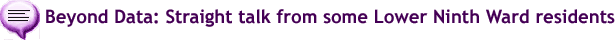 Source Citation: “Beyond Data: Straight Talk from some Lower Ninth Ward Residents.” (Fall 2003). Interviews by Nilima Mwendo and Allison Plyer, Greater New Orleans Community Data Center. <http://www.gnocdc.org> (March 23, 2005).