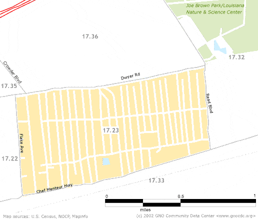 Maps of the Read Blvd West NeighborhoodNeighborhoods in the Data Center web site are made up of Census tracts. This allows the easy combination of Census data to give accurate information at the neighborhood level. Below you'll find three maps. The first of these shows Census tract boundaries, the second is a street map with the neighborhood boundaries, and the third, just for comparison, shows the zip code boundaries that fall in this neighborhood. Census tract boundaries![]() Street map boundaries![]() Zip code boundaries![]()