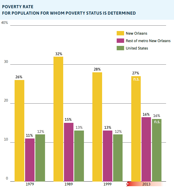 IN METRO NEW ORLEANS, EMPLOYMENT AND INCOME DISPARITIES BETWEEN AFRICAN AMERICANS AND WHITES ARE STARKER THAN NATIONAL DISPARITIES, AND POVERTY IS INCREASING IN SURROUNDING PARISHES—UNDERMINING SOCIAL COHESION AND RESILIENCE CAPACITY ACROSS THE REGION.
