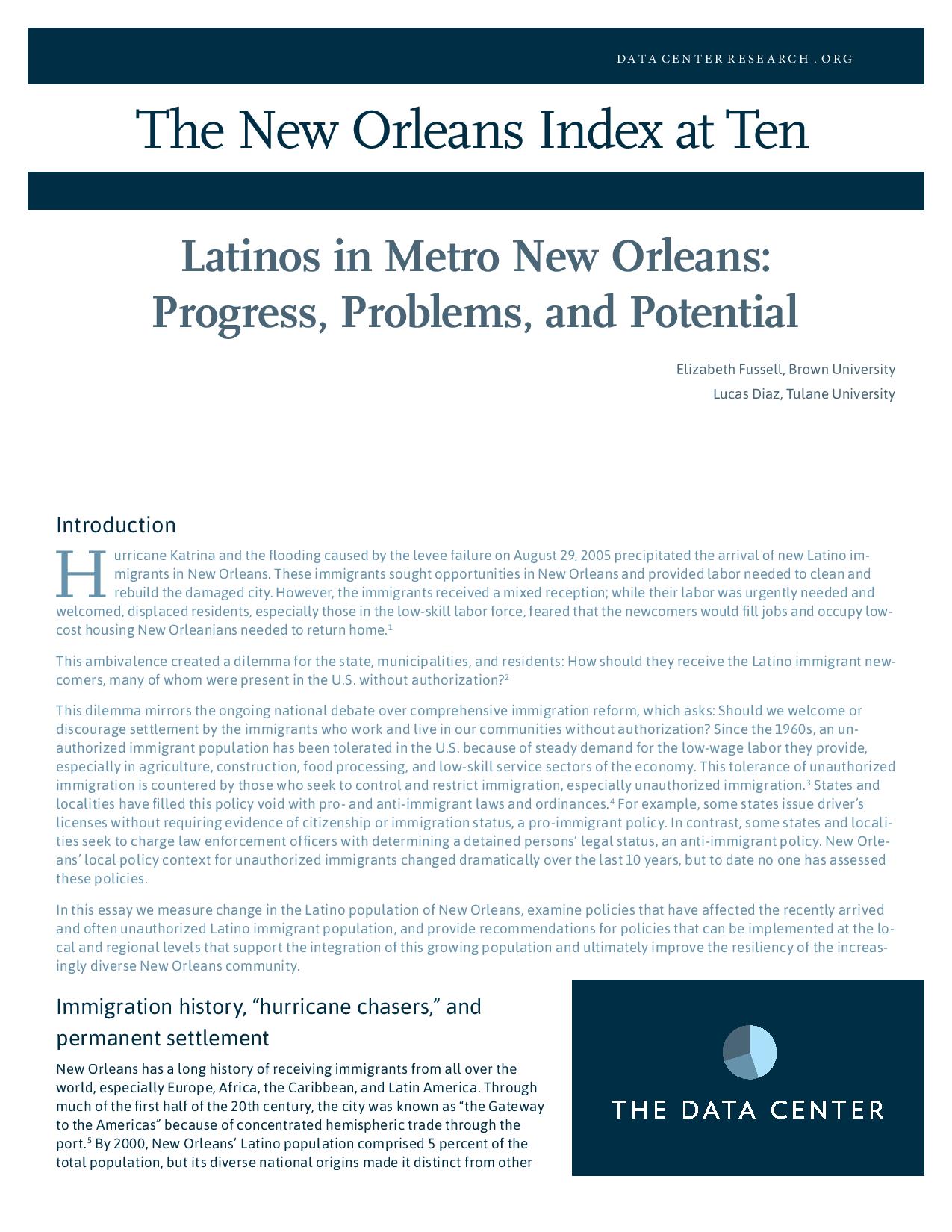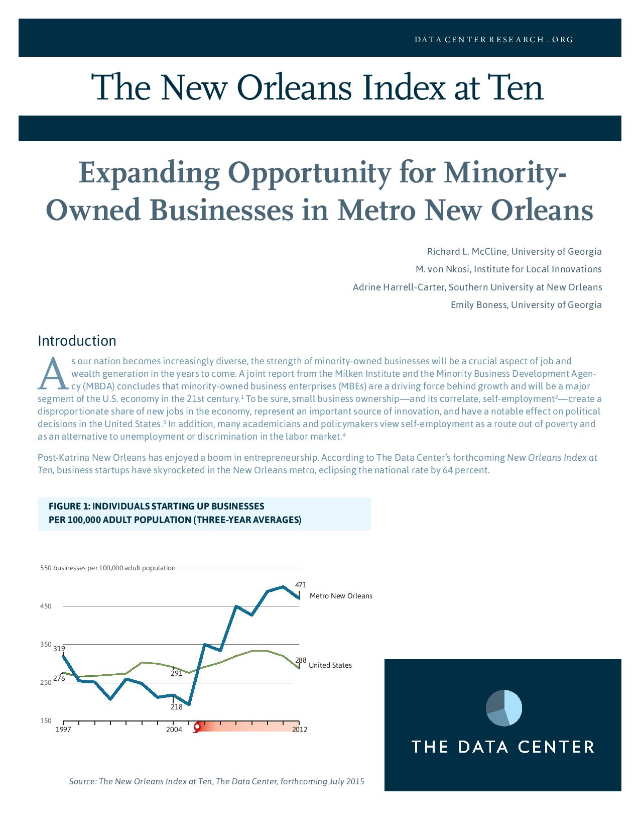 Our “New Orleans Index,” a now biennial publication developed in collaboration with the Brookings Institution, tracks progress towards prosperity relying on over 30 indicators that measure economic growth, sustainability, inclusive growth, and quality of life.